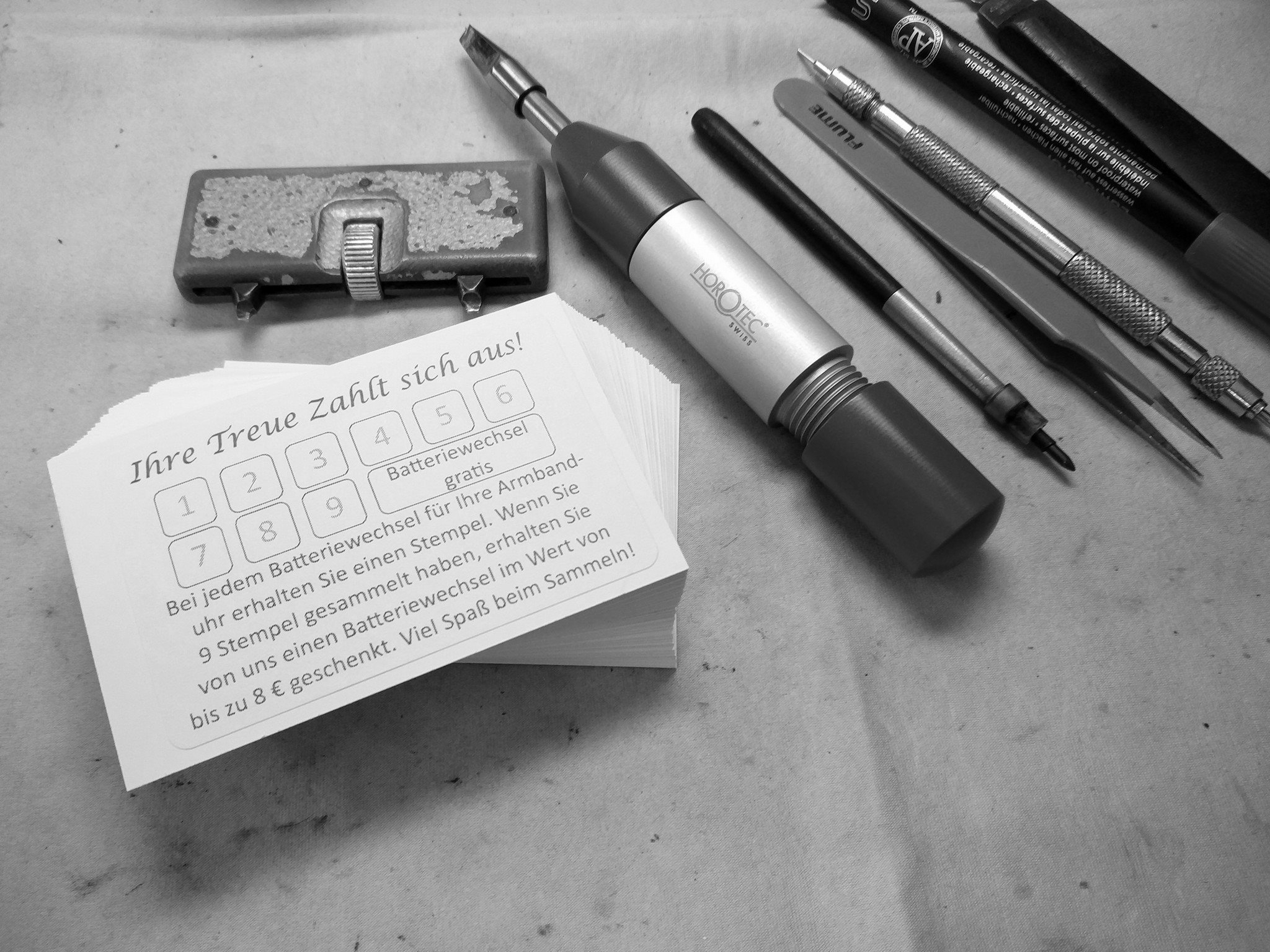 • Austausch der Batterie (wir verbauen nur Marken-Batterien von Murata, Varta, Energizer, Renata, Panasonic & Maxell)